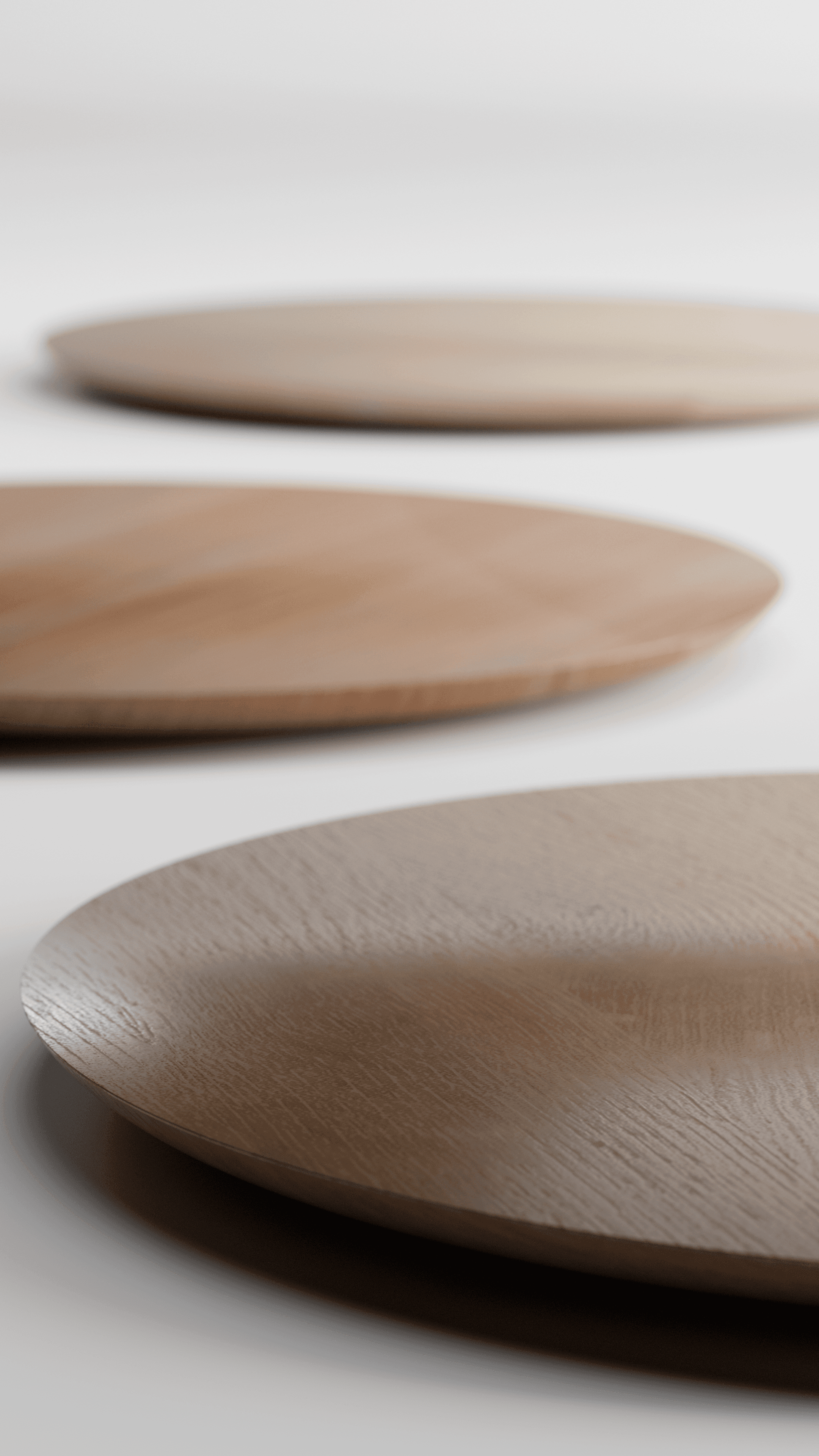 Models were built with precise proportions and material fidelity—capturing wood grain characteristics across three variations: cherry, oak, and ash. Beyond product turntables, I developed two complete room environments—a dining area and living room—inspired by Japandi interior design principles. Each scene was carefully lit to showcase how the furniture integrates into refined, minimal spaces. Lighting, color variation, and atmospheric detail were adjusted across all three wood textures, creating a cohesive visual system that demonstrates versatility while maintaining the studio's aesthetic integrity.